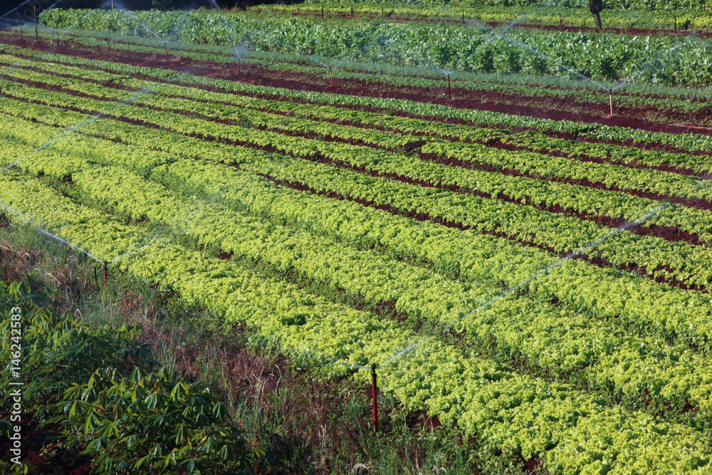 variety vegetable plants in growth at vegetable garden