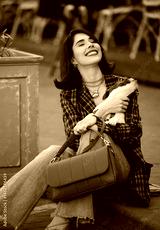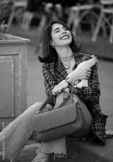 Girl model on the street in stylish clothes with a bag.Street style fashion.