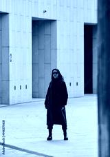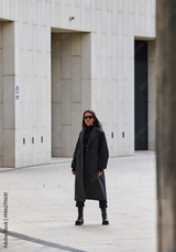 Portrait of a girl model in stylish clothes, shooting in an urban environment.