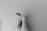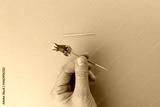 Single dandelion flower supported by wooden toothpick on gray background, perfect for DIY craft visuals, eco education content, biology illustrations, natural project guides, kids workshops,