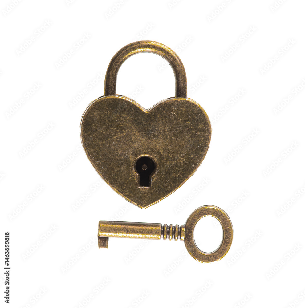 vintage copper padlock isolated on white background
