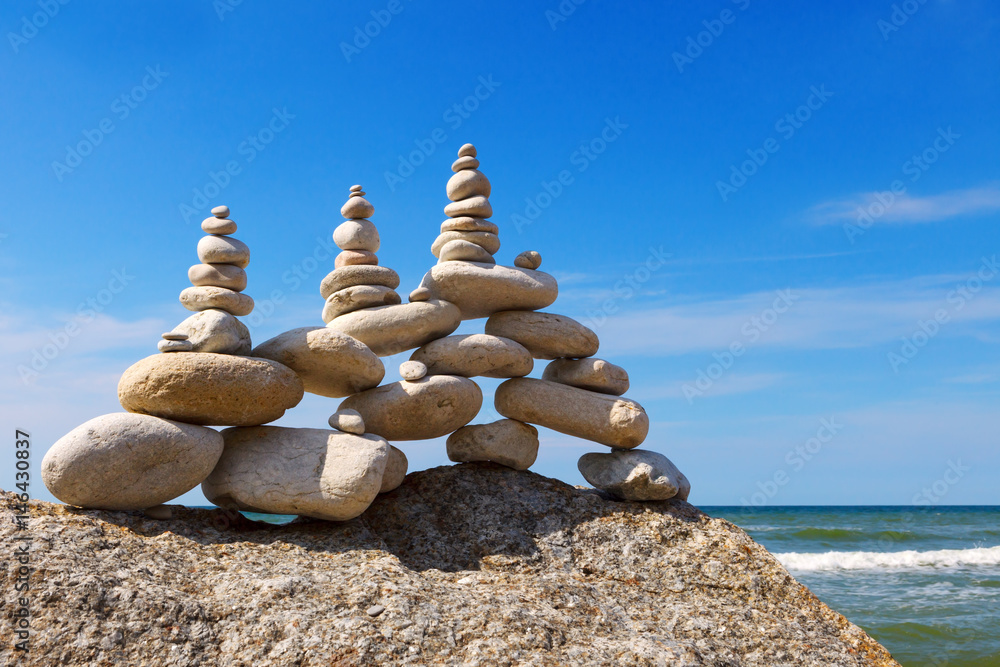 Concept of harmony and balance. Rock Zen on the background of summer sea