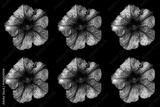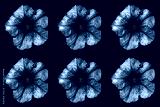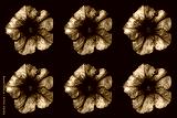 Pack of colored surreal dark chrome Althea flowers macro isolated on black