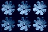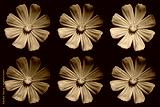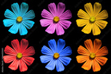 Pack of colored Primula flowers macro isolated on black