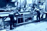 Skilled teamwork in a busy lumberyard workshop