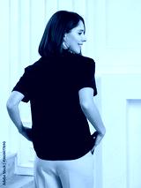 portrait of a young woman, stylish clothes. Shooting in studio.