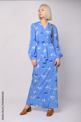 Fashion shooting in studio . Professional model , fashionable clothes and style, new collection. stylish look.