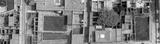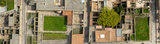 Zenithal aerial view of the archaeological area of the excavations of Herculaneum. There are ruins of houses, palaces and streets of an ancient Roman city. It's located in Ercolano, near Naples, Italy