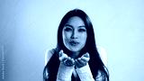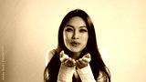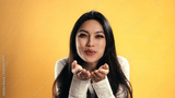 Studio shot of a young asian woman blowing a kiss on a yellow background with copy space