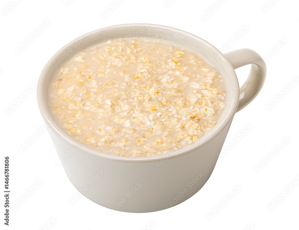 A cup of instant oatmeal on white background