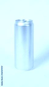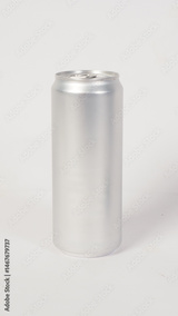 A blank silver aluminum can on white background.