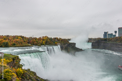 American side of Niagara Falls during sunrise .