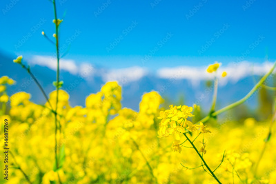 Mustard field with Beautiful snow covered mountains landscape Kashmir state, India