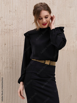 Girl model in stylish clothes posing in studio, fashion photo.