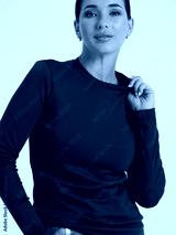 Girl model in casual clothes posing in studio, fashion photo.