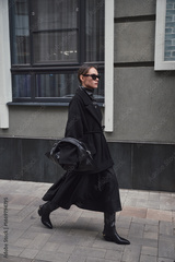 Street style fashion, professional model in stylish clothes.