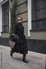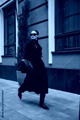 Street style fashion, professional model in stylish clothes.