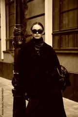 Street style fashion, professional model in stylish clothes.