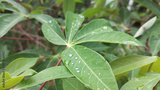 Refreshing morning dew on green leaves lush garden nature photography tropical environment close-up view serenity and rejuvenation