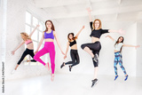 Young people dancing in the gym. Jump. The concept of sport, dance and a healthy lifestyle.