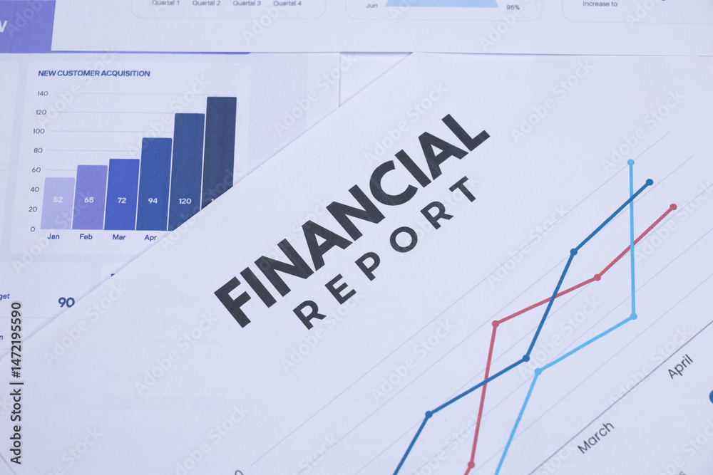 Close-up of a financial report with charts and graphs showing business growth and data analysis.