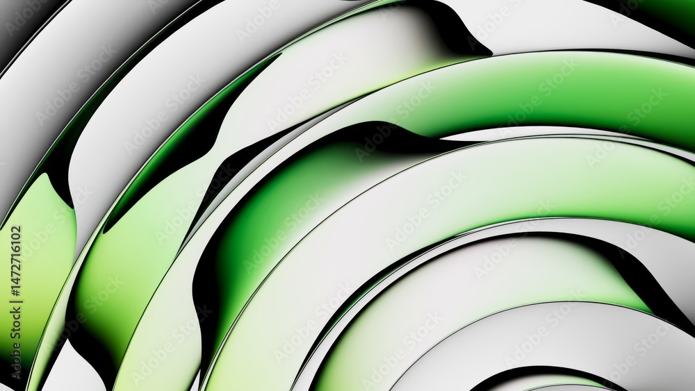 Abstract image of smooth, layered green and white glass curves forming a gradient pattern. Minimalist wallpaper