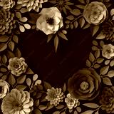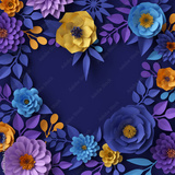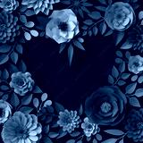 3d render, digital illustration, yellow blue paper flowers design, floral heart shape, Valentine's day festive background