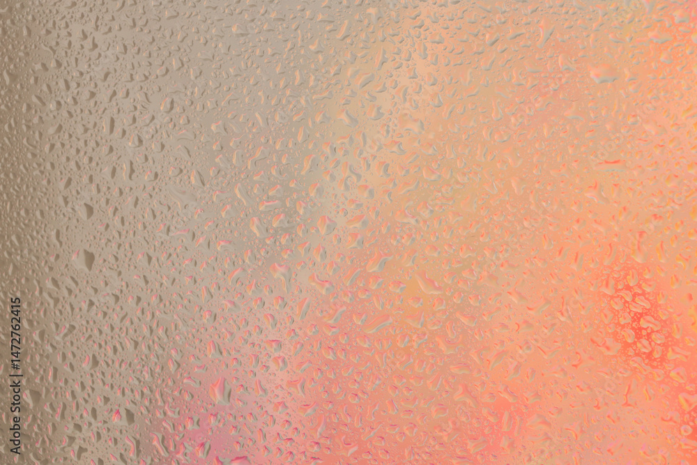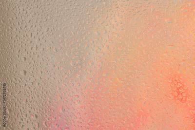 Smoke Soft focus through glass wet water drops. Abstract neon pink, beige gradient watercolor blur background.