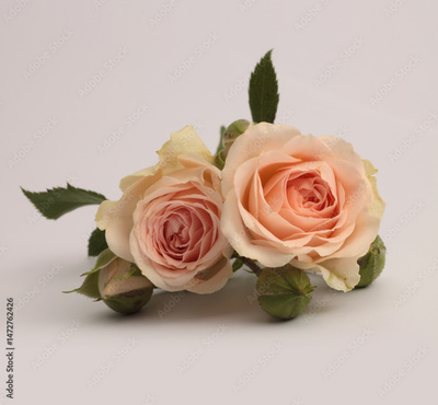 Cream pastel beige pink Rose Flower with light shadow on gray neutral. Minimalist still life. Natural background.