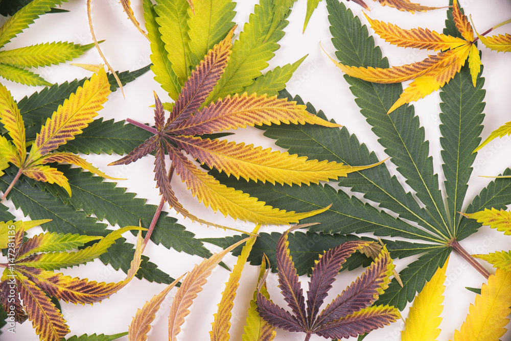 Cannabis leaves pattern isolated over white background - medical marijuana concept