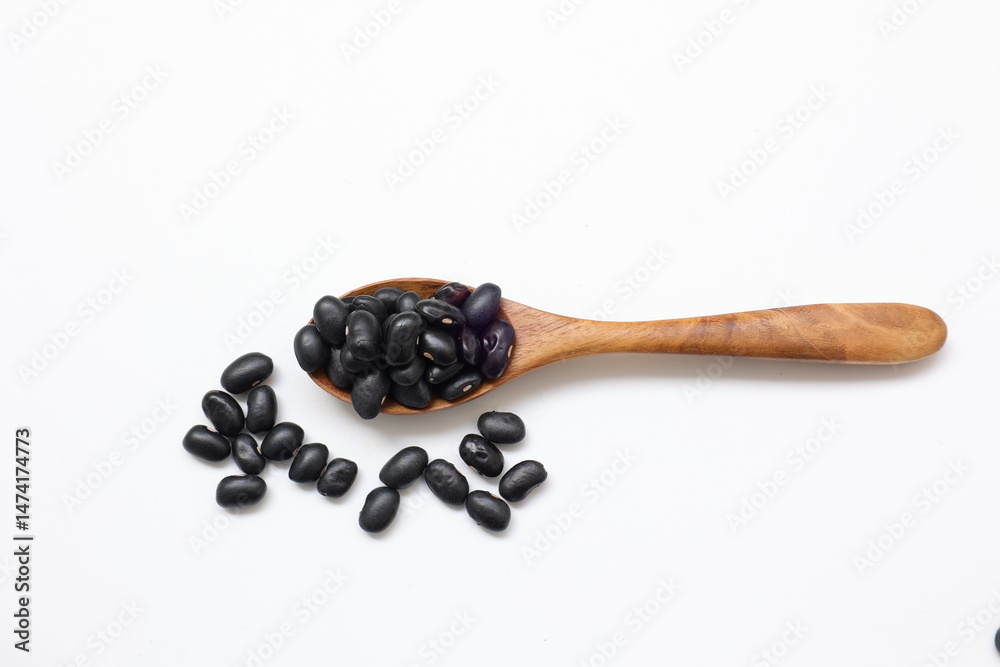 black beans soy on wooden spoon