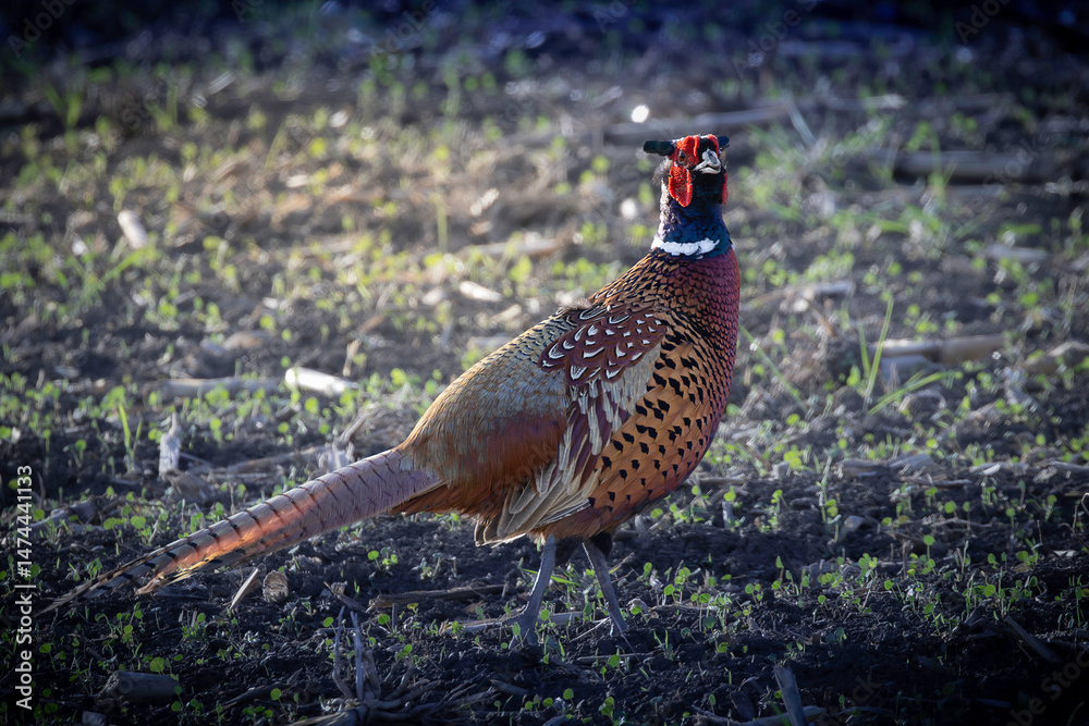 curious male common pheasant in natural habitat