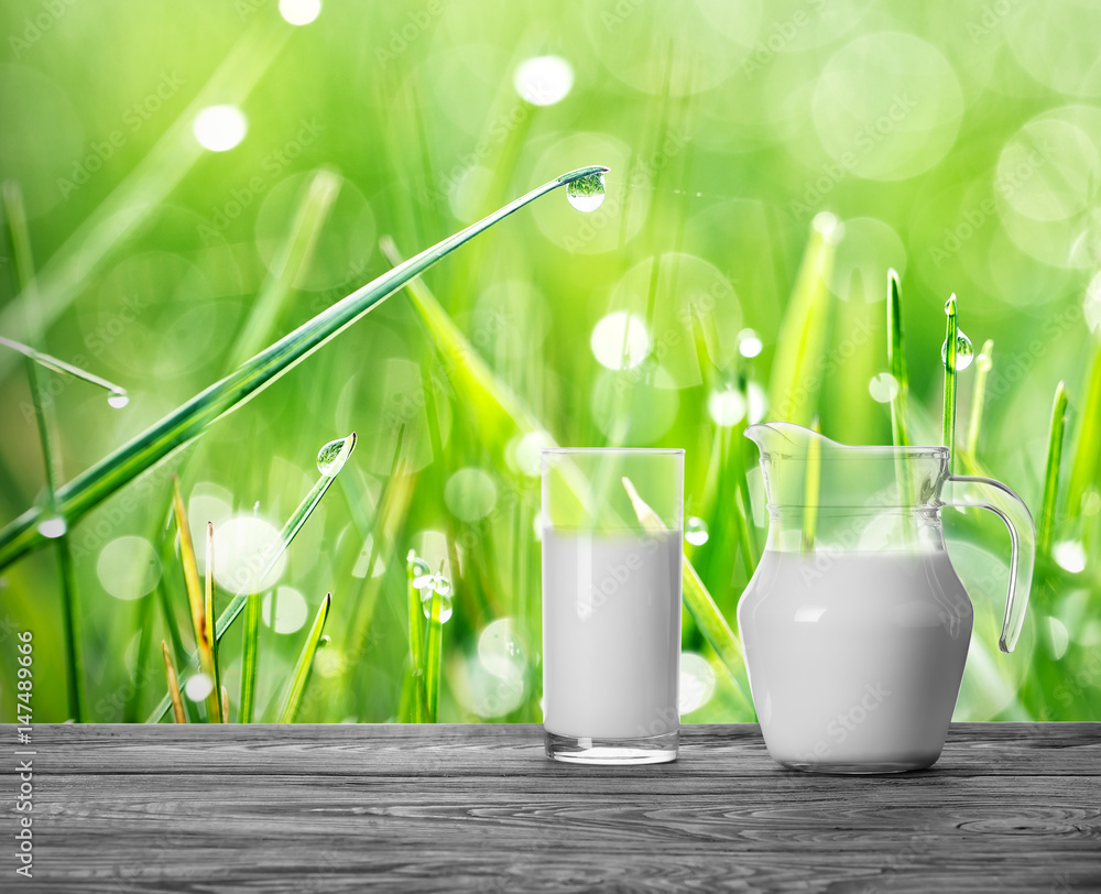 Cool milk on a wooden table