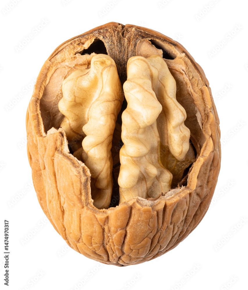 Walnut cracking open, revealing its nutritious kernel on transparent background