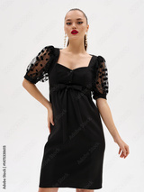 Pregnant girl model in stylish clothes on a colorless background in the studio.