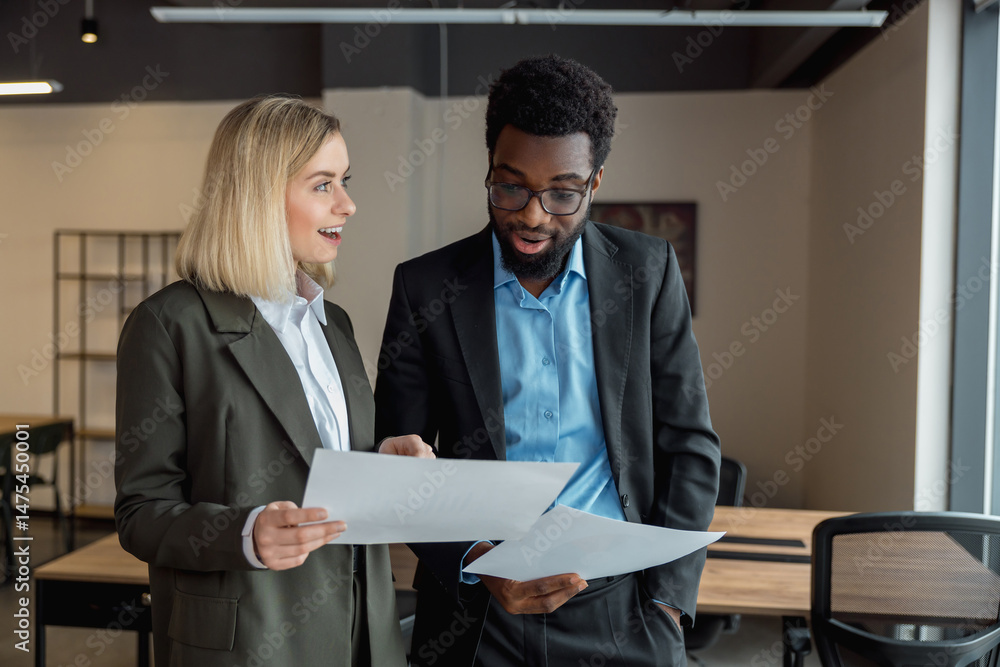 African american lawyer looking surprised while checking the documents his colleague showing him