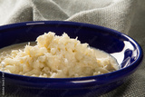 Brazilian dessert canjica our mungunza of white corn in blue bowl