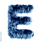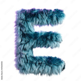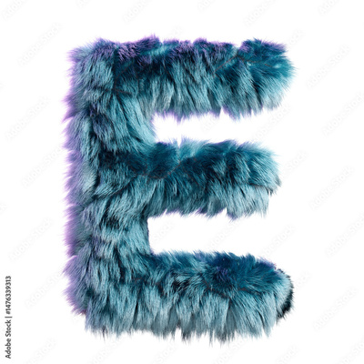Furry Blue Letter E Isolated on White Background in Creative 3D Design Style