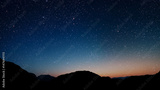 a a movement of stars in the night sky with the view of mountains.