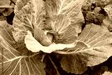 Fresh Green Cabbage Plant Growing in Garden – Close-Up of Brassica Oleracea with Textured Leaves in Natural Sunlight for publication, poster, calendar, post, wallpaper, cover. High quality photography