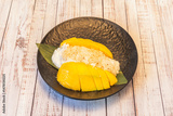 Khao niao sangkhaya or sticky rice with custard, is a traditional Thai dessert. It is prepared with glutinous rice (commonly known as sticky rice), topped with coconut custard and coconut milk