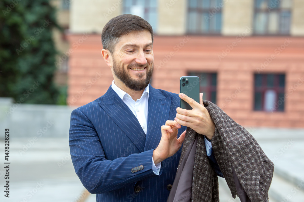successful businessman takes photos on a mobile phone