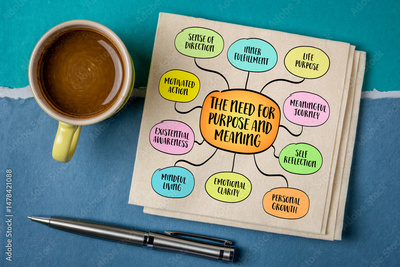 The need for purpose and meaning, a powerful and universal theme. Infographics mind map sketch.