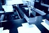 Innovative automation transforms box manufacturing with precision gluing using robotic technology in a busy factory setting