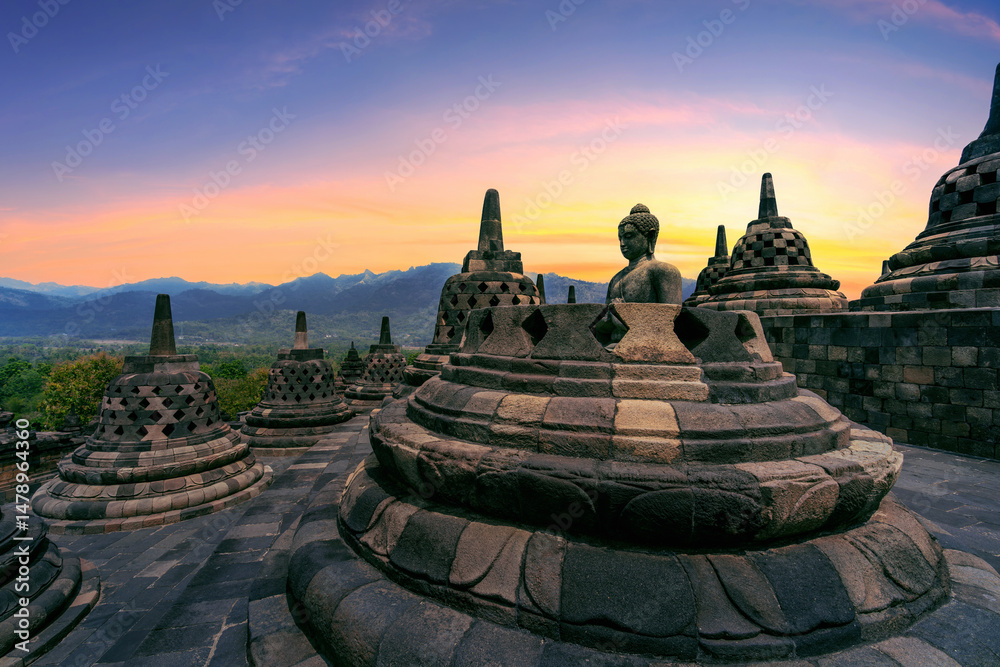Ancient largest Buddhist Borobudur Temple in Yogyakarta, Indonesia.
