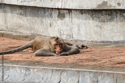 Sunbathing street monkey in Bangkok - humorous wildlife photography for tourism campaigns