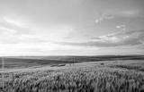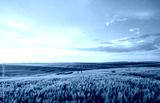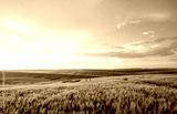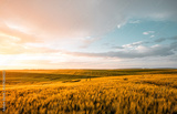 Ripe wheat ready for harvest in soft evening light and a pastel-hued sky.