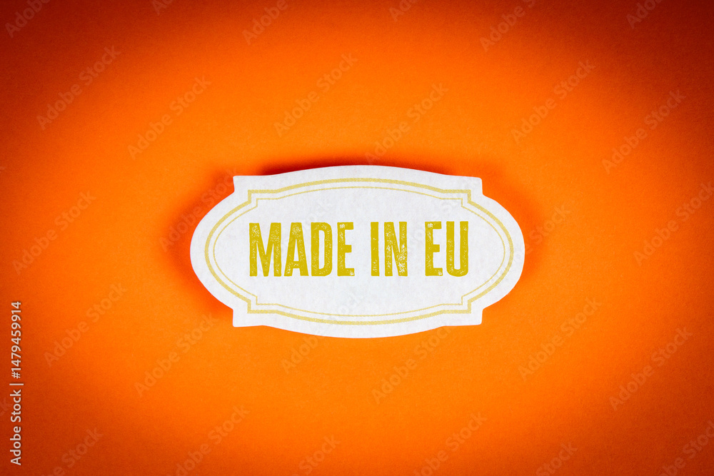 Made in EU Label Concept on Orange Background Representing European Manufacturing and Product Origin