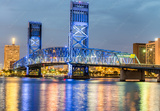 Jacksonville, Florida. City lights at night with bridge and river reflections