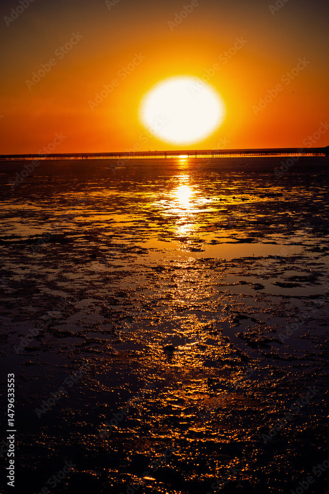 Golden Hour Reflections A Serene Sunset Over a Salt Lake Creating Mirror-Like Surfaces and Warm Light